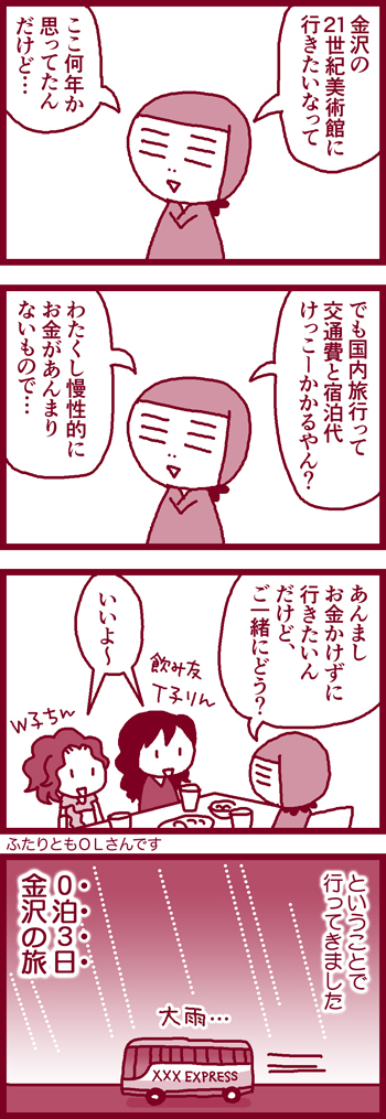 金沢0泊3日・その1 2011年07月23日 6月頭のことです。迷いのない友達たちでありがたい。↓押してもらえると喜びます↓金沢旅行の全容を収録【Amazon】忍者の奥さん[ブログログ]vol.5 [Kindle版] ... 続きを読む