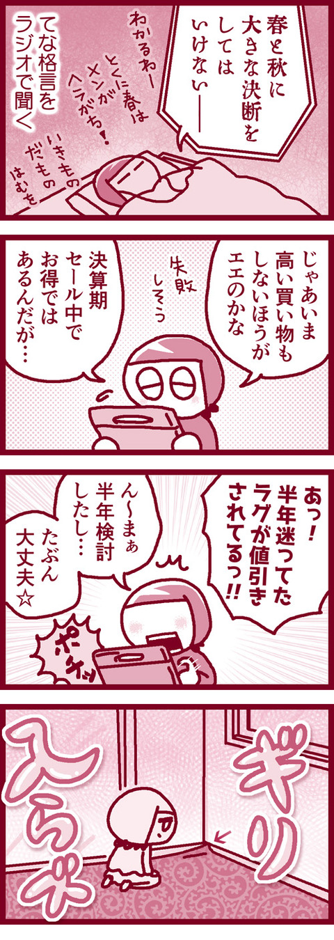 春はおろそか 2024年03月25日 幅201cmのスペースに200cmのラグ買ったら製造誤差で203cmのがきちゃった件 ~完~↓事情話したら返品がゆるされてセーフ ↓190cmで探すべきだったどすやねんで【楽天】 190×190cm 綿100% ラグマット 在庫処分↓kindle unlimitedでよめるよ忍者のハムさん[ブログログ]vol. ... 続きを読む